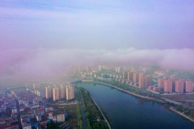 湖北郧阳:云雾缭绕 水墨汉江