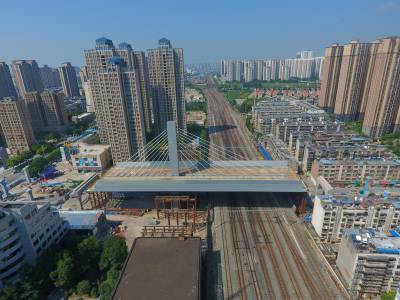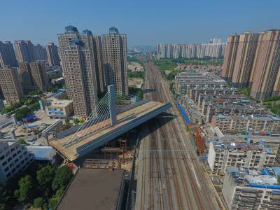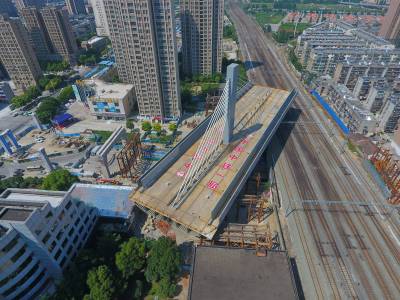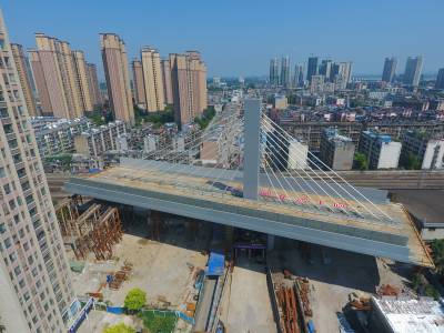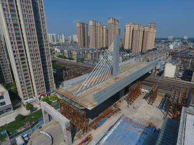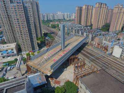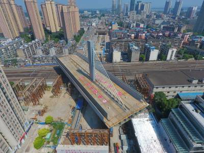 该桥是襄阳主城区首座转体桥,该联转体桥梁为全钢结构,全长159米,宽27.5米,梁重4000吨,横跨焦柳铁路,采用“非对称全钢结构独塔单索面斜拉桥+盖梁中央转体施工”的工艺,该工艺属全国首创。