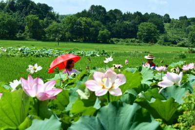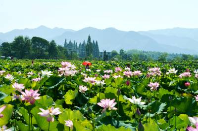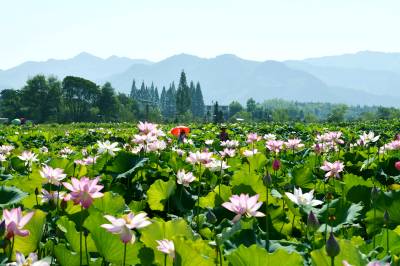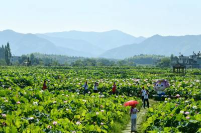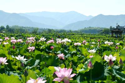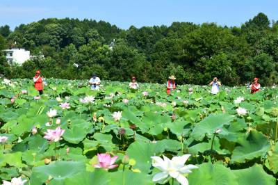 仲夏气温升高,湖北省咸宁市通城县四庄乡清水村青莲文化公园内,千荷花目前已进入盛开期,荷花竞放,色彩艳丽,美不胜收,荷香四溢,游客纷至沓来。