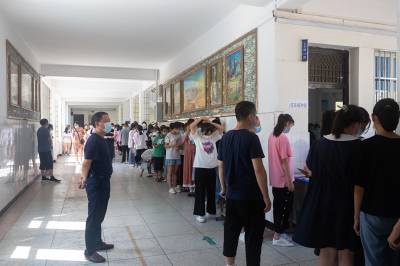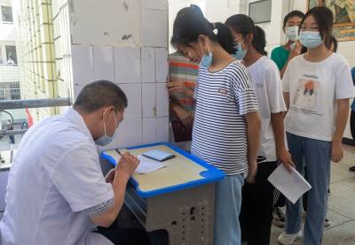 按照国家联防联控机制和省、市、区疫情防控指挥部的整体部署,7月31日上午8时30分,在郧阳区实验中学内,七八年级学生排起了长长的队伍,准备接种新冠病毒疫苗第一剂。据了解,该校此次共有1930名学生要在7月31日前到校进行集中接种,为了确保安全高效接种,该校采取三个年级分时错锋进校接种,其中九年级697名学生已于30日下午接种完毕。自7月27日该校接到通知后就开始了疫苗接种前的准备工作,各年级各班利用家长群和教师包联群对学生家长进行新冠肺炎防控和新冠病毒疫苗接种知识进行宣传,告知家长和学生开展12—17岁人群新冠病毒疫苗接种是构筑全人群免疫屏障的重要组成部分,要求家长填写《郧阳区12-14岁人群新冠病毒疫苗接种信息登记表》并在线上传学校,同时把“应到尽到、应接尽接”的理念告知学生和家长。接种当天,学生从进校门到接种疫苗,需要经过测温棚测量体温、进教室核对《郧阳区12-14岁人群新冠病毒疫苗接种信息登记表》、填写《新冠病毒疫苗接种知情同意书(第五版)》、阅读《十堰市新冠肺炎疫情防控指挥部办公室致家长朋友的一封信》、然后排队进入疫苗接种区接受医生询问等环节,按班级顺序打完疫苗后再次返回教室留观30分钟,由家长送回家后通过班级群向班主任报平安。(视界网 华成斌摄)
