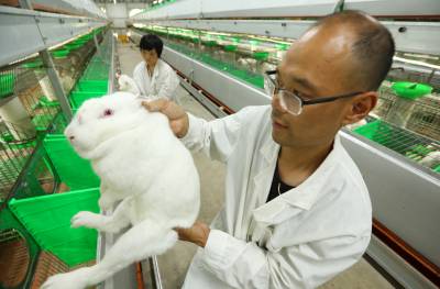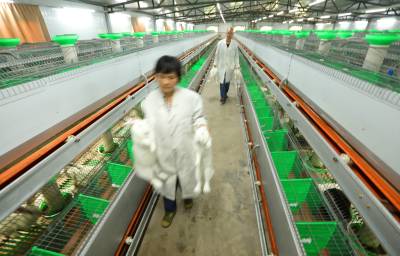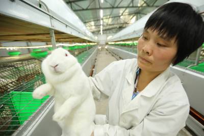 2021年8月1日,十堰市房县窑淮镇西沟村茶山兔股份有限公司技术人员在养殖基地观察肉兔生长情况,该基地每月订单式向四川省市场客户供应肉兔10000只。近年来,房县依托华中地区龙头企业湖北源聚兔业发展有限公司带动,扶持肉兔种源、笼具、饲料、技术,助力农户养殖肉兔增收致富。目前,全县养殖肉兔辐射10个乡镇15个专业养殖厂,年均100多万余只肉兔销往省内外市场,帮助3000多户农户稳收增收。