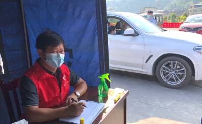 8月4日,宣恩县高罗镇中心小学5名党员教师主动请缨加入到志愿者队伍,协助该镇新冠疫情防控指挥部做好疫情防控工作。 炎炎夏日,5名教师志愿者在高罗镇高速公路出口24小时值守,检查登记出入辖区人员和车辆,筛查外来人员,用实际行动将党史学习走深走实。 (王恕森 摄)