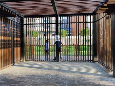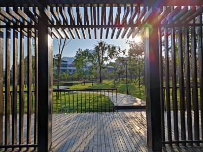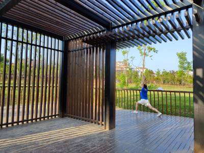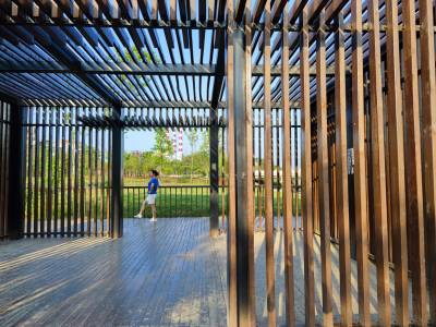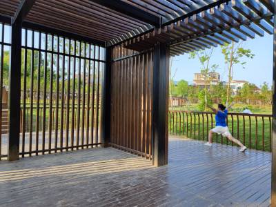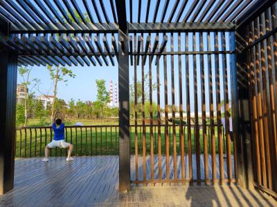 2021年8月4日,清晨市民在云梦吴禄贞公园运动健身锻炼。 云梦吴禄贞公园是为纪念民族英雄、清末著名爱国将领、辛亥革命烈士、盖世之杰吴禄贞大将军而扩建成的。公园今年初建成对外开放,供市民休闲运动锻炼。云梦吴禄贞公园成为全民健身运动的重要场地之一,建筑彰显特色,其中“露窗露顶屋”内外通透,窗内窗外成为一道亮丽风景。