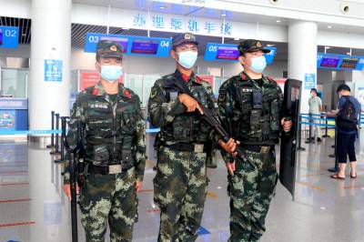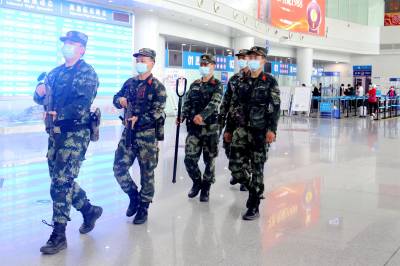 2021年8月5日,在十堰市高铁东站、武当山机场,武警十堰支队官兵与公安干警开展联勤武装巡逻勤务,守好交通卡口疫情防线。