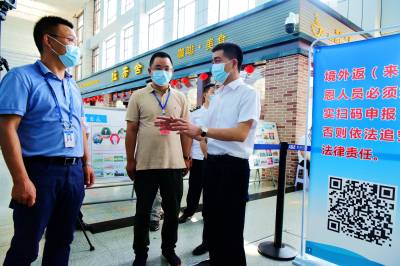 连日来,该市纪监委聚焦疫情防控重点场所、重点环节,深入机场、火车站、客运集散中心、商场超市、景区农家乐等疫情防控一线开展监督检查,督促部门单位压紧压实防控责任,落细落实防控措施,堵住可能导致疫情反弹的窟窿和漏洞,守牢外防输入关,阻断疫情传播渠道。(通讯员 谭华 蔡燕 摄)