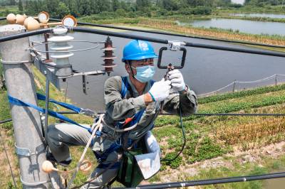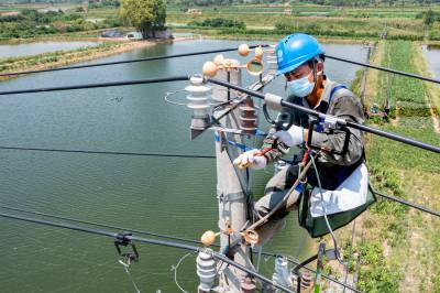 8月7日,武汉供电公司员工紧急抢修高压线路故障,保障800余个大小渔殖增氧用电