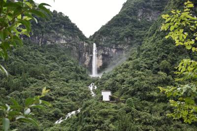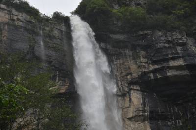 “飞流直下三千尺,疑是银河落九天。”8月10日,一场大雨过后,宣恩县高罗镇盘古庙村麻柳塘飞水岩壁上,一袭瀑布挂前川,壮观场面吸引不少游人驻足观看。