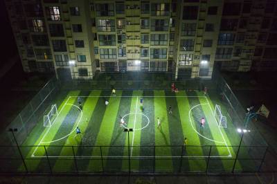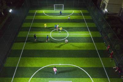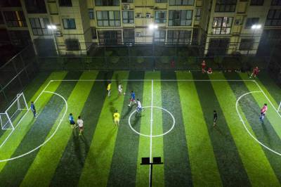 尧治河楚翁泉酒业有限公司足球场是5人制标准足球场,投资25万元,建设面积800平方米,是2020年国家公共体育场普及工程非标准足球场建设项目,于2020年底建成并免费对外开放。该足球场铺设了人造草皮,场地柔软、舒适、耐磨、透水性好,笼式足球相比于标准足球场地,场地要求较小,降低了参与者年龄层次和身体素质等方面的要求,让各年龄层的足球运动爱好者都能参与尝试。(视界网杨韬摄)