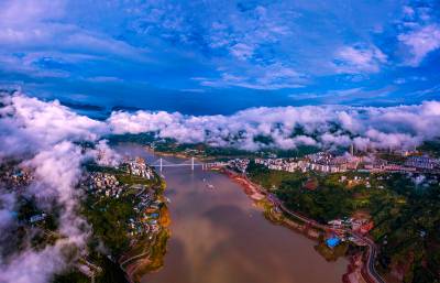 湖北郧阳:云雾缭绕 水墨汉江