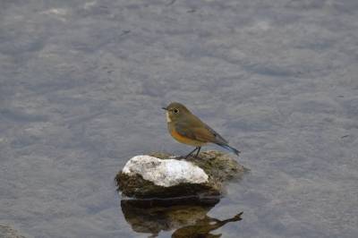 拉丁学名:Tarsiger cyanurus。既是夏候鸟,也是冬候鸟。为雀形目、鸫科、鸲属、红胁蓝尾鸲种。小型鸟类,体长13-15厘米。橘黄色两胁与白色腹部及臀成对比。