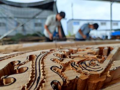 纪庆华、纪建明来自江西省景德镇,他们两人是父子,被称为“木雕非遗传承父子兵”。父亲纪庆华,1966年生。当年在景德镇农村,流行着年轻人学一门手艺,今后可以以手艺养家糊口的习俗。就这样,纪庆华年轻时就学习木雕这门手艺。没想到,进入这一行,纪庆华从事木雕技艺如今已经三十多年了。纪庆华学木雕,爱木雕,精于木雕。儿子纪建明长大后,纪庆华让儿子子承父业,也进入木雕工匠的行列,让儿子也当了一名木雕匠人。儿子纪建明,1989年出生,是眼下景德镇徽州木雕雕花界最年轻的工匠之一,成为一名木雕非遗传承人。