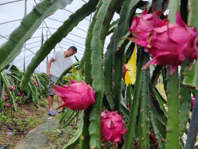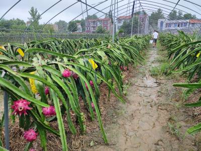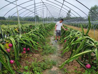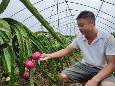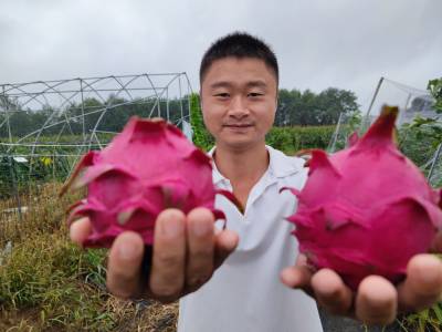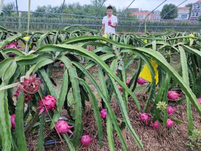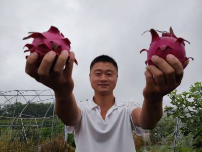 2021年8月21日,云梦县清明河乡饶港村青年农民王敏种植的火龙果喜获丰收。眼下,王敏的火龙果果园已进入采摘期,无花果也挂满枝头,进入采收期。 王敏是一名九零后青年,出生于1990年。在广东等地打工多年,2018年初,他毅然辞去工作,从广东回到老家,用自己在外打工攒下的所有积蓄,创办了家庭生态采摘园,栽植了火龙果、无花果等深受消费者喜爱的水果。
