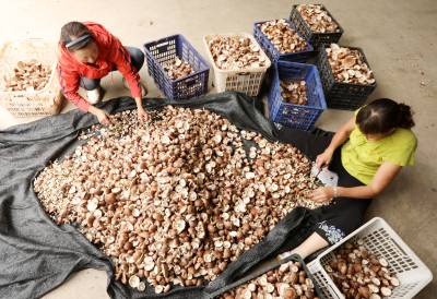 2021年9月3日,十堰市房县门古寺镇叶家河食用菌基地业主何立林和妻子谢祥珍在为烘干黑油菇作准备。何立林和妻子谢祥珍在家门口的门古寺镇叶家河村兴办的黑油菇产业,年均收入达到90多万元,夫妻俩先富带后富,近3年带动6家农户栽培黑油菇致富。当地实施“公司+专业合作社+入股+劳务”的模式,带动农民发展黑木耳、香菇产业,促进农民增收。目前,全县袋料耳菇达5000万袋,椴木黑木耳10万架,耳菇年均实现产值7亿元,带动6万多农民增收致富。