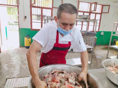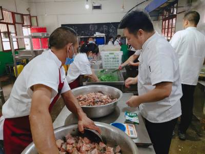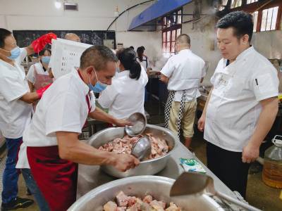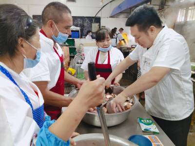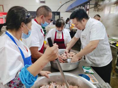 开学以来,今年54岁的中国注册烹饪大师——湖北午禾祥校园团膳管理有限公司董事长李庭华,来回穿梭于随州市随县一中、随县二中食堂,手把手教一批年龄在四、五十岁以上的徒弟学习腌制鱼肉类、焯水、烹饪技术要领,同时,他还要求所教的徒弟在手艺上务必做到德艺双馨。