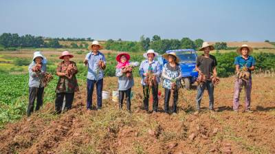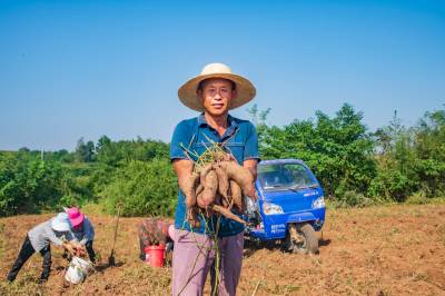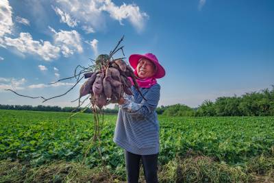 近几年,枣阳市车河管理区红湾社区连片种植紫薯2000余亩,亩平收益可达5000元,成为村民增收支柱产业,2021年9月11日,村民趁天晴正忙采挖。