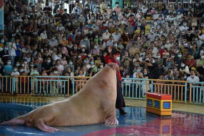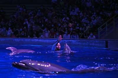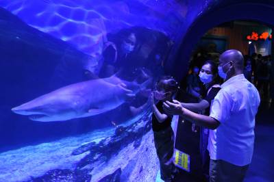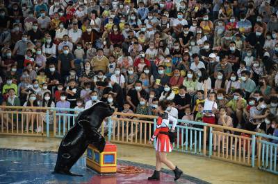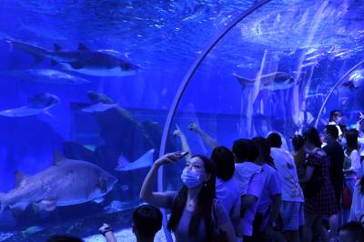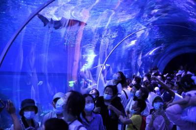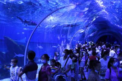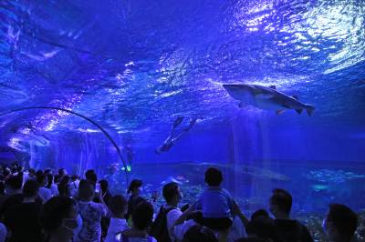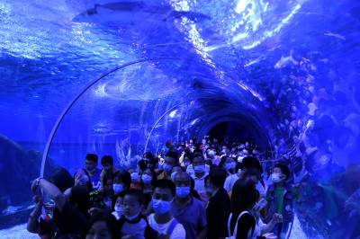 9月20日,武汉海昌极地海洋公园游人如织,户外欢乐秀场的海狮海象表演、海洋剧场的极地奇缘表演更是场场爆满。游客们穿越海底隧道、欣赏海洋动物,在欢乐中度过中秋佳节。据介绍,按照疫情防控的要求,园方严控最大入园人数,中秋节期间累计接待近3万游客,成为武汉中秋期间热门景区之一。同时海洋公园也迎来开业十周年来第2000万位游客游园打卡,来自黄冈的桂女士成为极地“超级幸运官”,享受终身免费游极地的权益。(湖北日报全媒记者 倪娜 通讯员 陈婷 袁杰 摄)