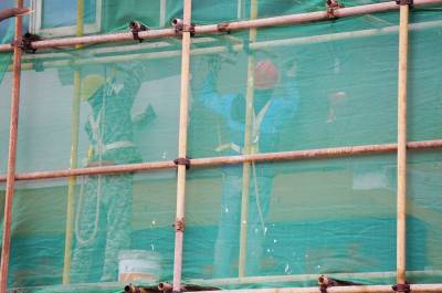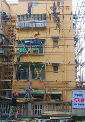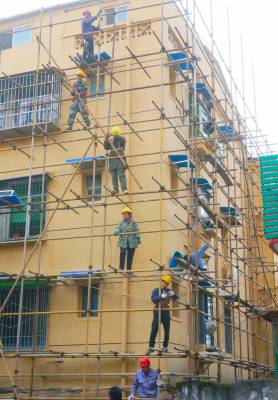 2021年10月27日,十堰市郧阳区多个片区正在对旧楼墙体进行装饰施工、为打造国家级文明卫生城市,该区从2016年开始分区分片对老旧小区楼房墙体和楼道内墙体进行整修喷上色彩涂料,蔬通下水管,为抽油烟机安装排油污管道,为空调装上装饰箱,重建楼顶隔热层,让小区大门和围墙一起旧貌换新颜。