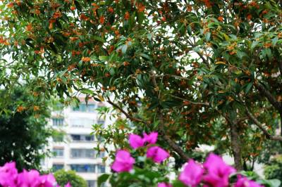 金秋十月,丹桂飘香。10月28日,恩施市城区的街道旁、公园中、小区里,一株株桂花竞相绽放,一簇簇、一朵朵玲珑隽秀的橙色、黄色小花,美不胜收,为金秋的恩施山城增添了几许悠远闲雅的意趣,更有那扑面而来的阵阵馨香,沁人肺腑,令人陶醉,惹得市民和游客流连忘返。