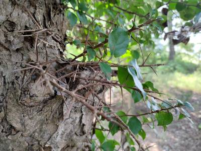2021年10月28日,云梦县义堂镇红光村发现两棵难得一见的柞木树。树干上生长着长长的尖刺,看着就让人生畏,大人小孩都不敢惹它,牛羊动物也不敢碰它。