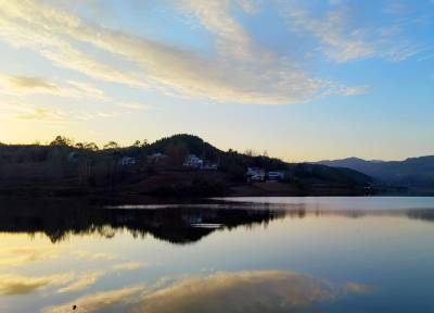 2021年10月29日,十堰市房县杏水沟水库水清如镜,蓝天、白云、乔灌木映入碧绿的水面。该县采取“定人、定岗、定责、定奖惩”措施,当好守“井人”,共护一库清水,保护“水缸”饮用水水质。目前,当地水库全部禁止投肥养鱼.完成拆除水库网箱1470只,打捞库面漂浮物近百吨,水库周围植树绿化率实现应绿尽绿,全县77座中小型水库全部达到饮用水水质标准,为40余万农村人口提供了卫生安全放心水。