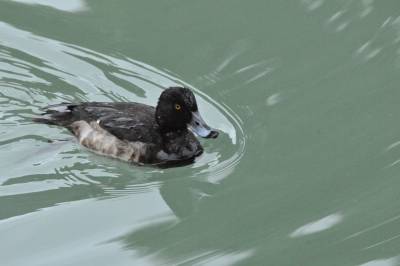 拉丁学名:Aythya fuligula。迁徙性鸟类。为雁形目、鸭科、潜鸭属。体长40-47厘米,体重550-900克。是中等体型矮扁结实的水鸭。头带特长羽冠,雄鸟亮黑色,腹部及体侧白。雌鸟深褐,两胁褐而羽冠短,有浅色脸颊斑。为深水鸟类,善于收拢翅膀潜水。 主要以水生植物和鱼虾贝壳类为食。 繁殖期5-7月,每窝产卵6-13枚,一般8-10枚。 该鸟2020年10月31日在神农架林区松柏镇青阳河水面拍摄。