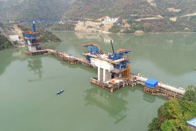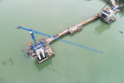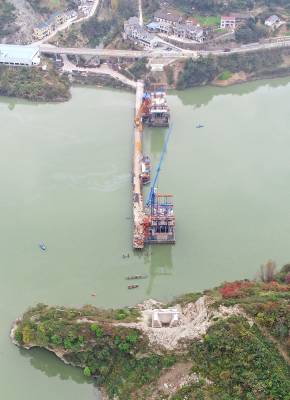 11月2日,竹山县沧浪堵河大桥建设现场,工人正在紧张施工。沧浪堵河大桥位于该县楼台乡对峙河村,桥的南北两端,分别连接十竹路与邢沧路,全长420米,是当地居民通往竹山县城、十堰城区最便捷通道。这座大桥建成后,不仅可有效解决该片区1.5万老百姓出行难题,而且对推动这一地区美丽乡村建设及沧浪山旅游资源开发,发挥巨大作用。