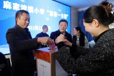湖北十堰:书香满园春意浓 樱满枝头花正好 校园为民众开放赏花