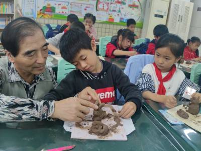11月3日,武汉市江汉区长港路小学一至四年级的教室里,走进一批特别的老师,他们是湖北省非遗传承人沈松柏、胡作林、鲁应仁等大师。在每周星期二的下午,都是孩子们最盼望己久的日子,他们将会在校园的“滴水文化特色课程”中与大师相约相会,让自已在学习减负中动脑动手,学会剪纸、丝编、微型风筝、泥塑、布贴画、面塑、立体折纸等非遗传统文化,享受一堂中华传统知识的课程。