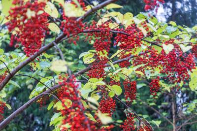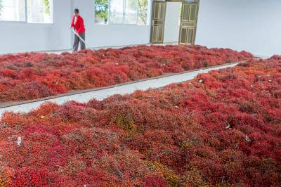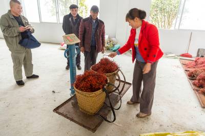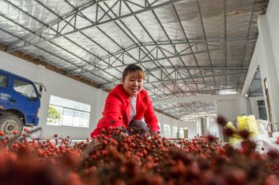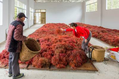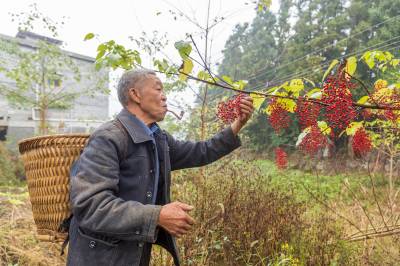 2021年11月3日,湖北利川市沙溪乡,山桐子丰收,村民积极采摘、交售。 近年来,利川市大力发展山桐子(又称油葡萄),并 引进加工企业就近收购,有效带动老百姓增收,促进企业增效。