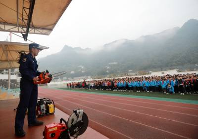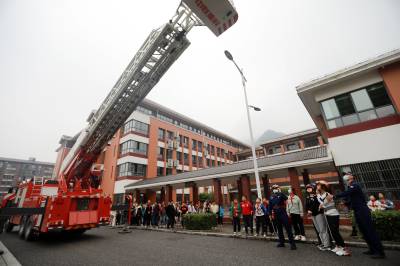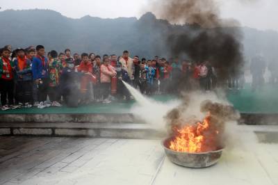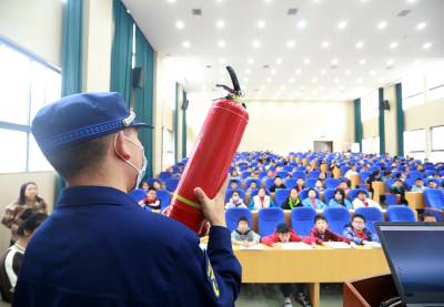 当日上午,在该校各年级教室内,辖区消防救援大队组织开展了应急疏散逃生演练,千余名师生全部在规定时间内安全有序抵达至集结点;在该校操场上,消防员向师生们介绍和展示了消防器材装备的功能用途与操作方法,演示了如何利用灭火器扑救油盆火,不少师生踊跃参与体验;在该校多功能学术报告厅内,消防员通过播放火灾案例、讲述身边的故事、模拟灾害事故现场等方式,直观有效地传播消防安全理念,普及消防安全知识。(王方/摄)