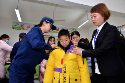 当日,共青团保康县委组织保康县消防救援大队和该县一家爱心企业,到保康县特殊教育学校开展“情系特校·与爱‘童’行”公益助学活动,为困难学生捐赠棉衣,为师生和家长进行消防知识培训、捐赠学习用品,并深入到送教上门学生家中送温暖。(视界网杨韬 旷微摄)