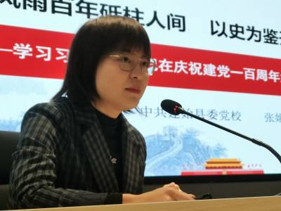 10月4日,建始县委党校教师张娥正在为学员解读习近平总书记“七一”重要讲话精神。