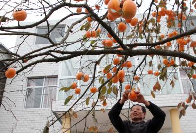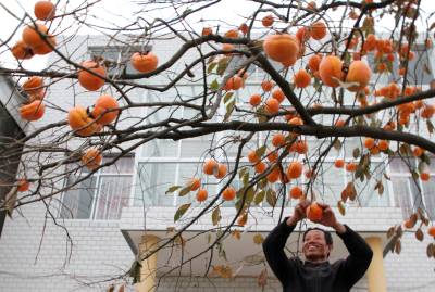 2021年11月4日,十堰市房县城关镇白土村农民周光学在家门前小院采摘火红的柿子。在房县水土保持小流域区、农家院落房前屋后,红彤彤的柿子挂满枝头,丰收的景象映入眼帘。如今,该县小柿子成就了大产业、农民增收致富的“黄金果”。近年来,当地在水土保持小流域发展柿子、核桃、板粟等经济水保林60万亩,平均每年实现优质干鲜果收入达11亿元。