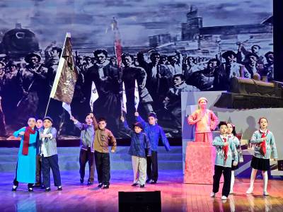 在今年武汉有36所获评"全国中小学中华优秀传统文化传承学校"中小学之一的江汉区武汉关小学,以全市独特传承汉剧、汉绣地方特色的非遗文化校园入选。因影响中外的二七大罢工施洋烈士故居在该校园内,该校创作编排上演的汉剧《英烈见证我成长》,当日参加了今年的展演活动。她是以施洋烈士为原型,由校园故居的“小讲解员”向新同学介绍施洋烈士为线索,巧妙运用时空交错方式,将观众带回到二七京汉铁路大罢工运动的现场,在优美的汉剧唱腔中,感受施洋烈士舍生取义为劳工的革命精神,将红色基因深深根植于小学生的心中,同学们穿越时空交错精彩表演,得到现场评委们的点赞和认可,在参加决赛15个剧目中脱颖而出,荣获了展演活动的三鼎甲(一等奖)。