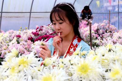 2021年11月7日,十堰市茅箭区茅塔乡大坪村食用菊花家庭农场内,一栋栋菊花大棚里鲜花盛开,各色菊花铺满一地,吸引游人前来观赏菊花,采摘菊花,品尝菊花美食。