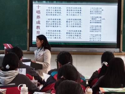 “一唱养成教育歌,爱国守法最重要,法制意识要增强,校级班规要记牢……”11月9日,丹江口市汉江科技学校20级学前教育(1)班音乐课上,声乐老师王文娥在教唱由其本人根据吕家河民歌《十杯子酒》乐调改编的《十唱养成教育歌》,受到学生们的广泛喜爱,课堂气氛十分热烈。