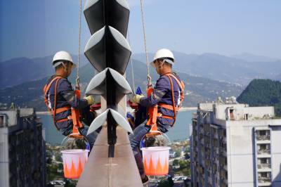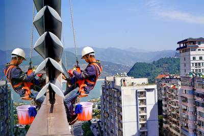 巴东:清洁高楼的“蜘蛛人”