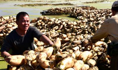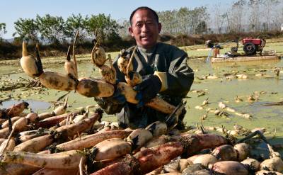 一秀天鹅湖莲藕开挖 丰富了黄石武穴市民菜篮子