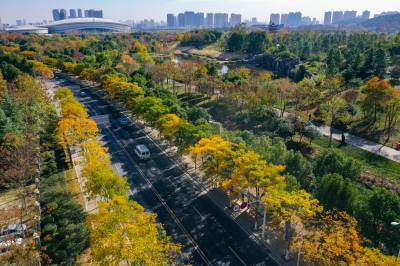 航拍下的码头潭公园层林尽染