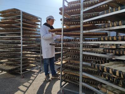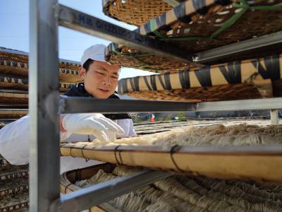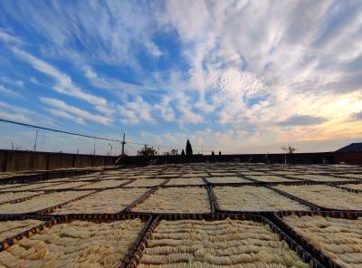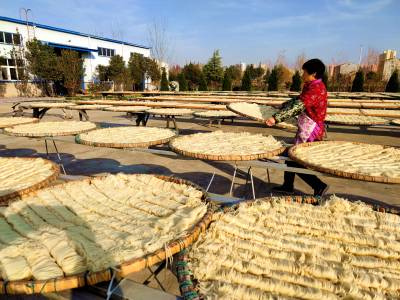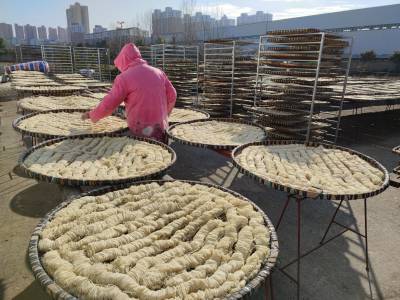 2021年12月18日,云梦县楚河鱼面厂、刘文华鱼面厂、黄湖鱼面厂、吴台鱼面厂、吴春桥鱼面厂、刘顺柏鱼面厂等厂家,抢抓当前晴好天气,生产晾晒“云梦鱼面”。近段时间云梦地区天气晴好,云梦鱼面生产厂家购进上色青鱼、草鱼等优质鱼,用上等面粉,用传统工艺生产地方传统美食“云梦鱼面”。目前各厂家生产满负荷,货源充足,为元旦、春节市场备足充足的传统美食货源。