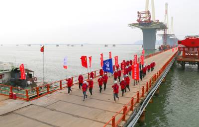 建桥工人海上长跑迎新年