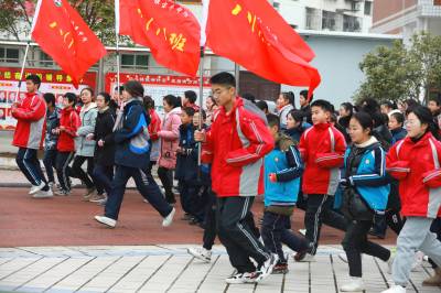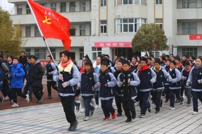 12月28日,湖北省竹山县宝丰镇宝丰中学师生在大课间开展“阳光体育,冬季长跑”活动。全校师生冒着寒风,迎着朝阳,喊着口号,举着班旗,在运动场上你追我赶,比体能、比毅力、比风格,呐喊声此起彼伏,脸上洋溢着兴奋与自信, 为冬日的校园增添了青春的活力。