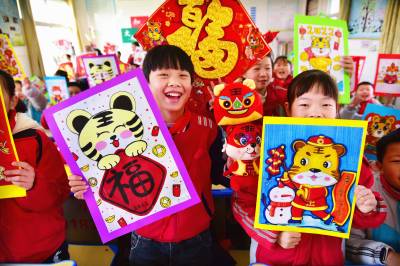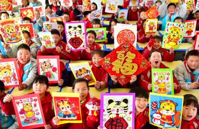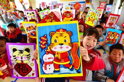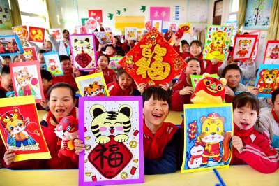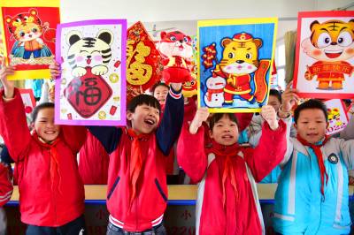 当日,湖北省十堰市郧阳区柳陂镇中心小学迎来一场别开生面的"我的首个生肖‘虎年’美术展",学校近百名属虎的12岁学生,在际遇人生“第一个本命虎年”之际,兴高采烈的展出了精心设计创作和收集的有关"虎"的剪纸、粘贴画、饰品等美术作品,“虎”“虎”有威,妙趣横生。