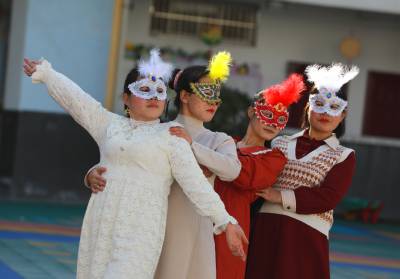 12月29日,竹山县宝丰镇中心幼儿园暖意融融,喜气洋洋,师生欢聚一堂,载歌载舞,共同庆祝新年的到来。《提着灯笼拜新年》《新年大吉》《病毒走开》《冰糖葫芦》《假面舞会》等20个文艺汇演节目,精彩纷呈,惹人心醉,高潮迭起,掌声不断。