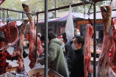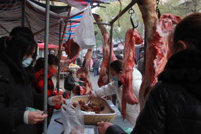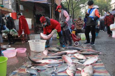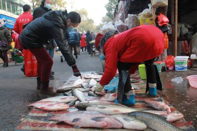 1月3日,安陆市市民在府东菜市场备办年货。据了解,该市城区有10大菜市场和10大商超,每日有3.5万余人在购买鱼肉、鸡鸭等各类年货,每日交易额超千万元,市场呈现物价稳定,购买旺盛的局面。