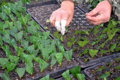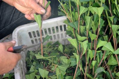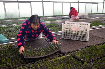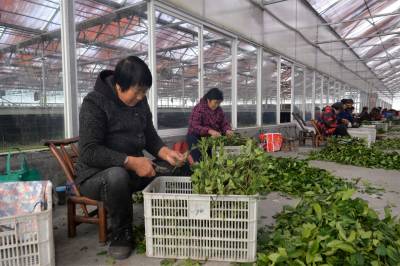 2022年新年伊始,在三峡工程坝头库首宜昌市夷陵区太平溪镇许家冲村智能育苗工厂的无性系茶树良种繁育基地,60多名三峡移民群众加紧对无性系茶树良种进行剪枝和扦插,将在春节前完成10万株茶叶穴盘育苗,已满足省内外茶苗订单的需求。