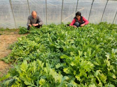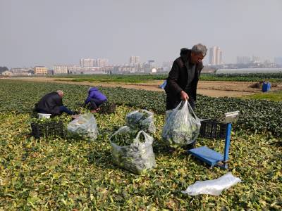 云梦菜农忙收获蔬菜供应元旦节日市场