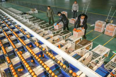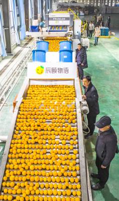 当日,秭归县屈原镇龙马溪村村民杜国琼、杜远礼,押运装满近10吨桃叶橙的货车驶入辰颐物语华中(秭归)电商产业园,抽样进行农残、糖度等智能检测后,通过内部品质无损检测机进行智能分选分拣包装,由电商销往全国各地。村民杜国琼、杜远礼现场介绍,经过智能分级分选按照优质优价销售的桃叶橙,比原来“混装混卖”的传统办法,增加收入25%以上。