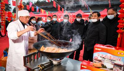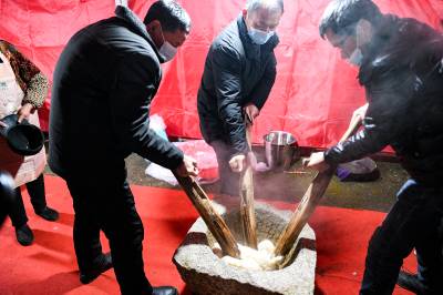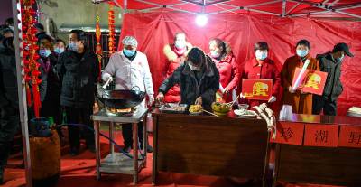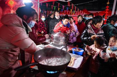 镇上的各路名厨云集这里,各显神通,包汤圆、打糍粑、藕全席,做鱼糕、炸麻花……,陆溪土特产品集中亮相,猜灯谜领奖品,品尝着现做的热气腾腾特色美食,其乐融融。