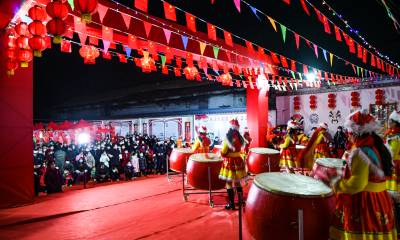 闹元宵在威风锣鼓《爱我中华》和采莲船闹元宵中拉开帷幕,吸引了众多居民参加,现场热闹非凡。百姓大舞台的正中间有一个大大的虎字,虎山社区因山象形于虎而得名。